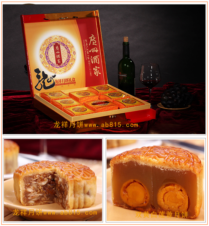 出品商:广州酒家祥龙月饼是广州酒家利口福集团生产的主打中秋热销品种之一,也国内广州月饼产销量最大及最受消费者喜爱的品种之一。内容物丰富,有传统的五仁、莲蓉、水果等多种月饼搭配。配心高档精美的手挽外包装。“月是故乡明,饼是广州好”、有华人的地方就有广州酒家月饼已成为消费者流传最为经典的一句话。