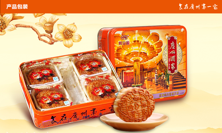 出品商:“月是故乡明,饼是广州好”,广州酒家有着数十年悠久的月饼生产经验。生产广州酒家月饼具有色泽金黄、油润软滑、甘甜不腻、皮薄馅优、花纹玲珑清晰、角度四正分明、饼身膨胀呈腰鼓型、饼底杏皮 色幼砂眼等特点,深得消费者喜爱。产销量一直稳居广东省第一位,居全国前三甲,成为国内广式月饼产销量最大的生产企业。