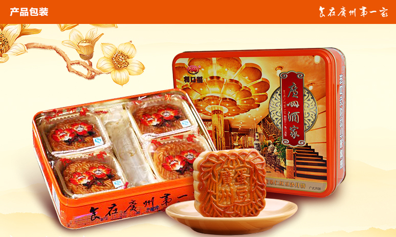 出品商:“月是故乡明,饼是广州好”,广州酒家有着数十年悠久的月饼生产经验。广州酒家月饼具有色泽金黄、油润软滑、甘甜不腻、皮薄馅优等特点,深得消费者喜爱。产销量一直稳居广东省第一位,2012已荣登国内月饼产销量最大的生产企业。