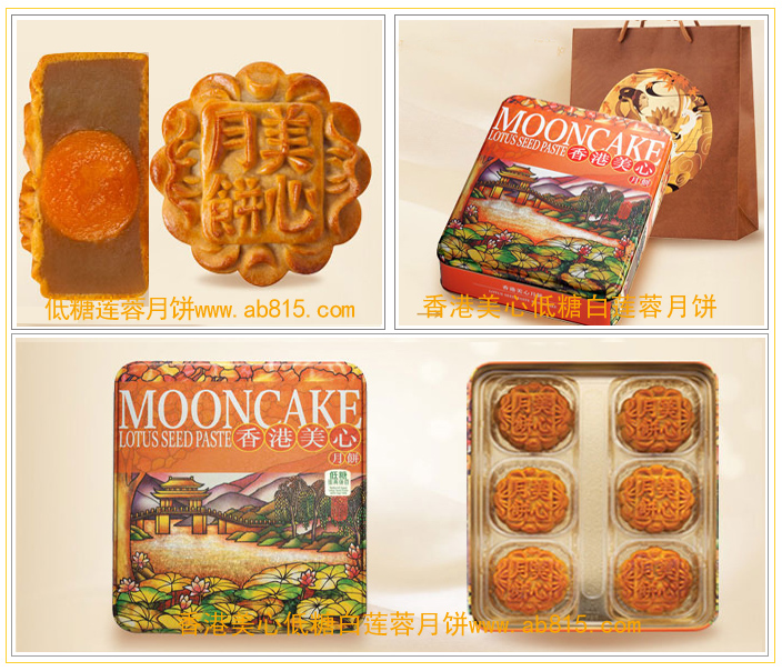 说 明:香港美心低糖蛋黄莲蓉月饼,特别选用各式醣类产品及蔗糖素制造,清香莲蓉配以全只上品咸蛋黄,香滑味美!外盒由香港著名设计师陈幼坚先生设计,月饼盒以「西湖十景」其中一景「苏堤春晓」作主题。一盒6个,每个约90克