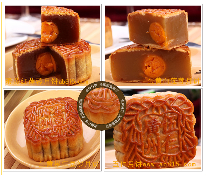 说 明:内装广州伍仁月饼1个*187.5g、蛋黄纯白莲蓉月饼1个*187.5g、蛋黄纯红莲蓉月饼1个*187.5g、蛋黄豆沙月饼各1个*187.5g;彩色豪华铁盒包装;每个月饼独立包装,烫金托盘;配套装刀签及专用豪华手挽袋。