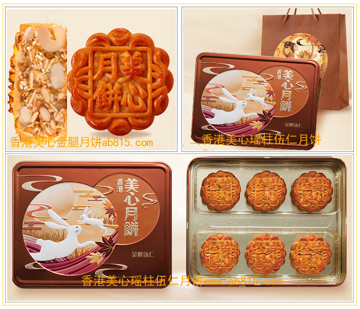 说 明:香港美心金腿五仁月饼,皮薄馅靓,由金华火腿配以香甜烟韧的伍仁馅料,口感十足,令人回味无穷。一盒4个,每个约185克。